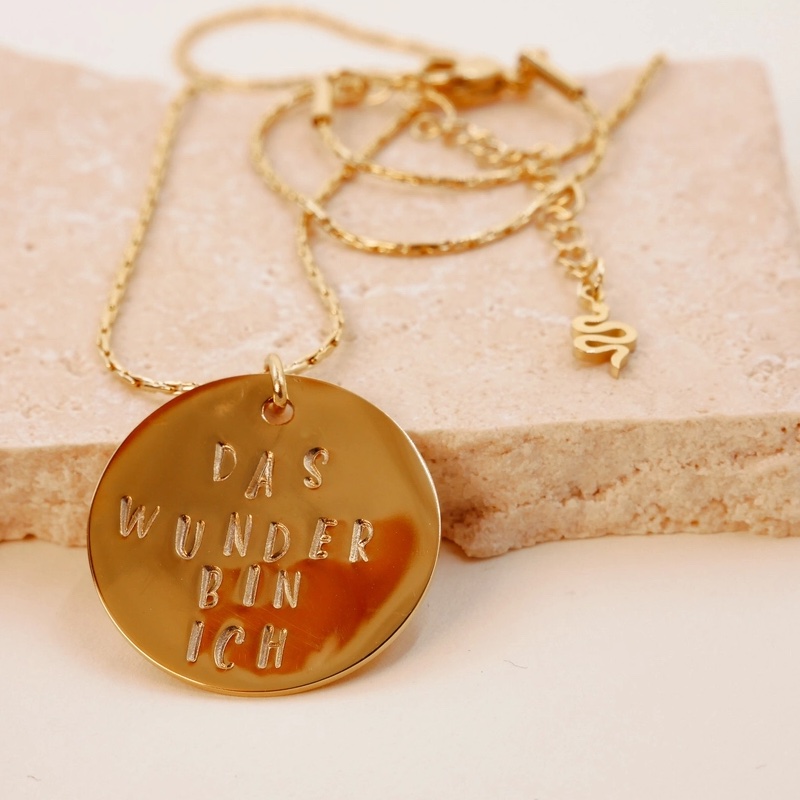 Trage deine persönliche Affirmation immer bei dir – als stilvollen, handgefertigten Talisman aus hochwertigem, hypoallergenem Edelstahl. Jede Kette ist mehr als Schmuck: Sie begleitet dich im Alltag, erinnert dich an deine Stärken und hilft dir dabei, deine Wünsche zu manifestieren.
