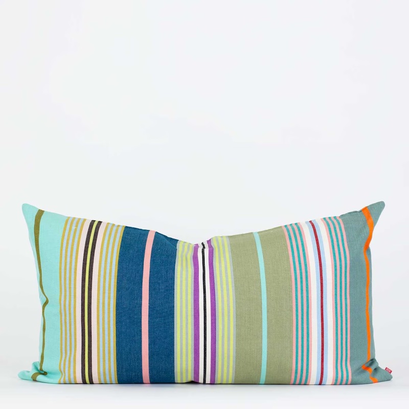 Gestreiftes Kissen mit hochwertigem Inlay aus zertifizierter Herstellung.