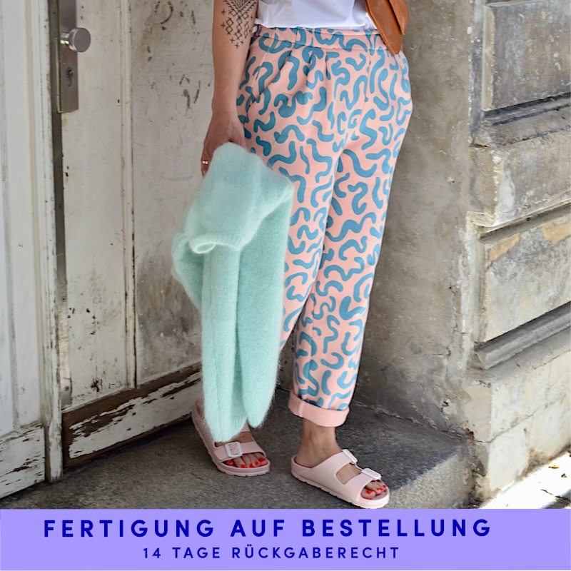 Damit die Rundung in der Mitte schön fällt und die Hose an Hüfte und Taille schmal sitzt, haben wir Abnäher eingearbeitet.