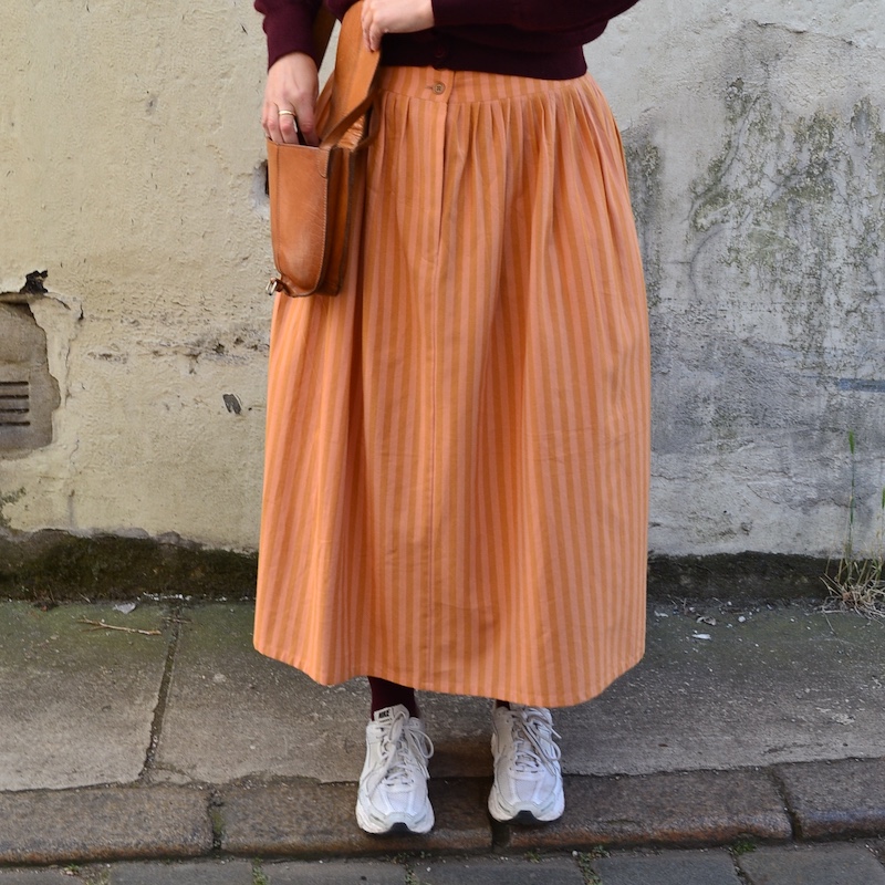 Rock aus zweifarbig gestreifter Baumwolle.