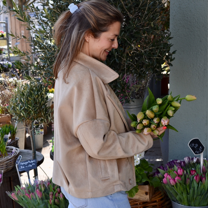 Diese Jacke aus weichem Wildlederimitat besticht durch ihre samtige Textur und ihren strukturierten Fall.