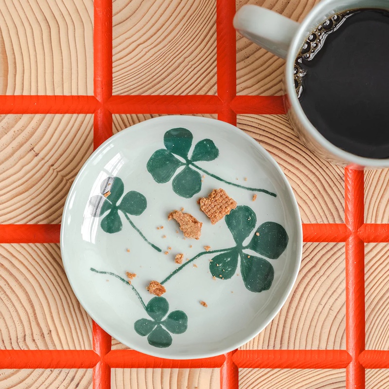 Der handgefertigte kleine Teller Clover aus Porzellan bringt einen Hauch von Glück direkt auf den Tisch.