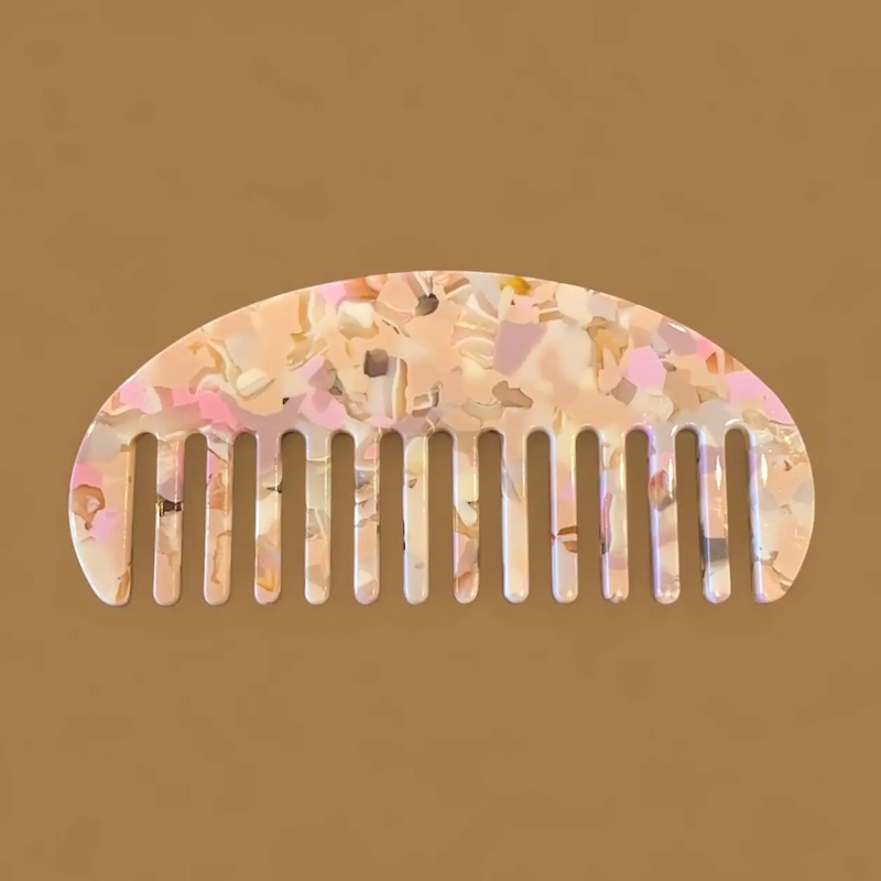 Der halbmondförmige Kamm in Multi-Rosa, hergestellt aus Zelluloseacetat natürlichen Ursprungs, ist das ideale Accessoire, um alle Haartypen sanft zu entwirren.