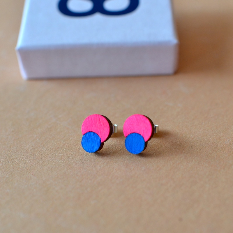Ohrstecker (silber) aus Birkensperrholz handbemalt. Echtsilber für Allergiker geeignet.
