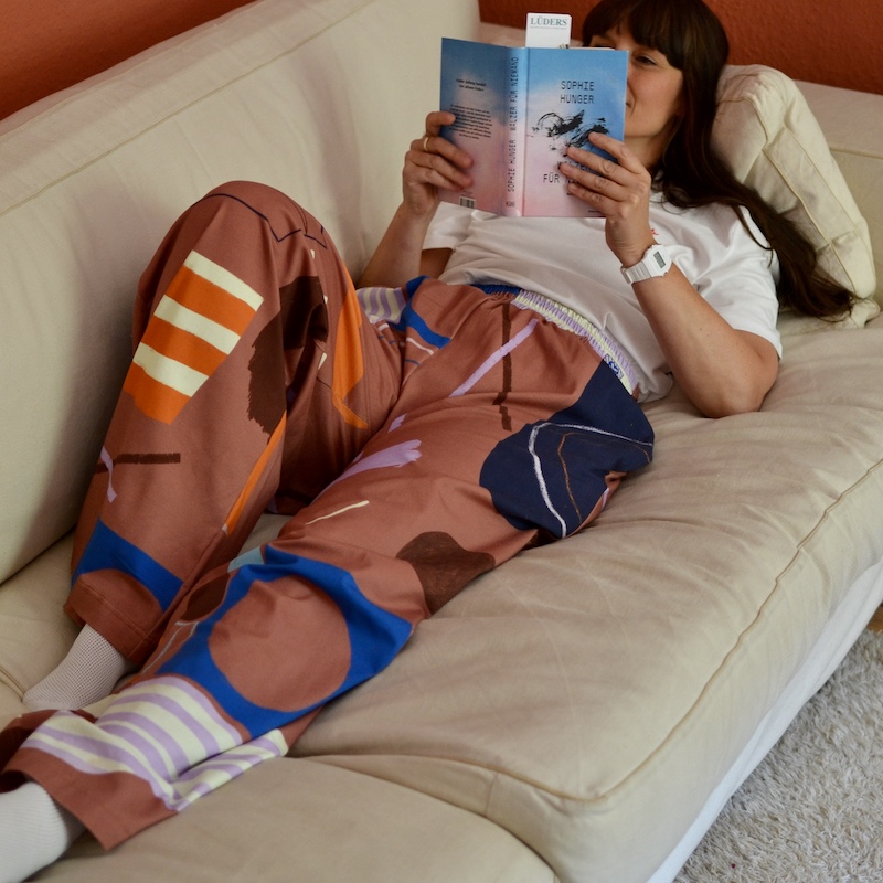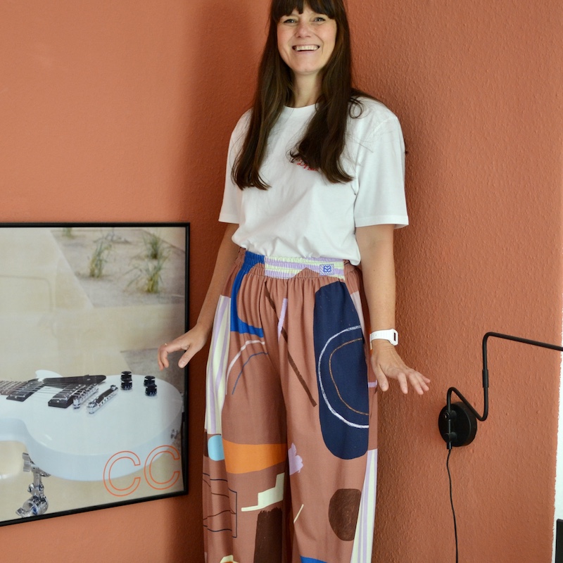 Nicki ist 175 cm, hat Konfektion 38/40 und trägt hier Größe L/XL. Größe M würde ihr ebenso passen, ist aber 4 cm kürzer. Je nach Style entscheidest Du, was Dir besser gefällt. Der Gummizug im Bund lässt viel Spielraum.