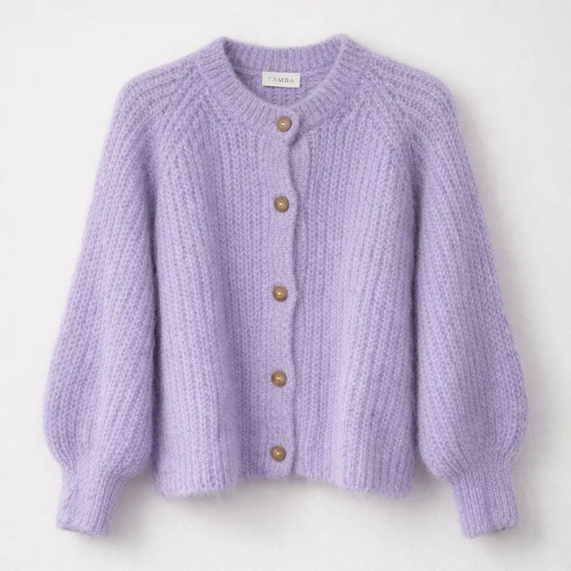 Breite Ärmel mit leichtem Volumen sorgen für eine moderne Optik, während das feine Mohair-Garn angenehme Wärme und hohen Tragekomfort bietet.