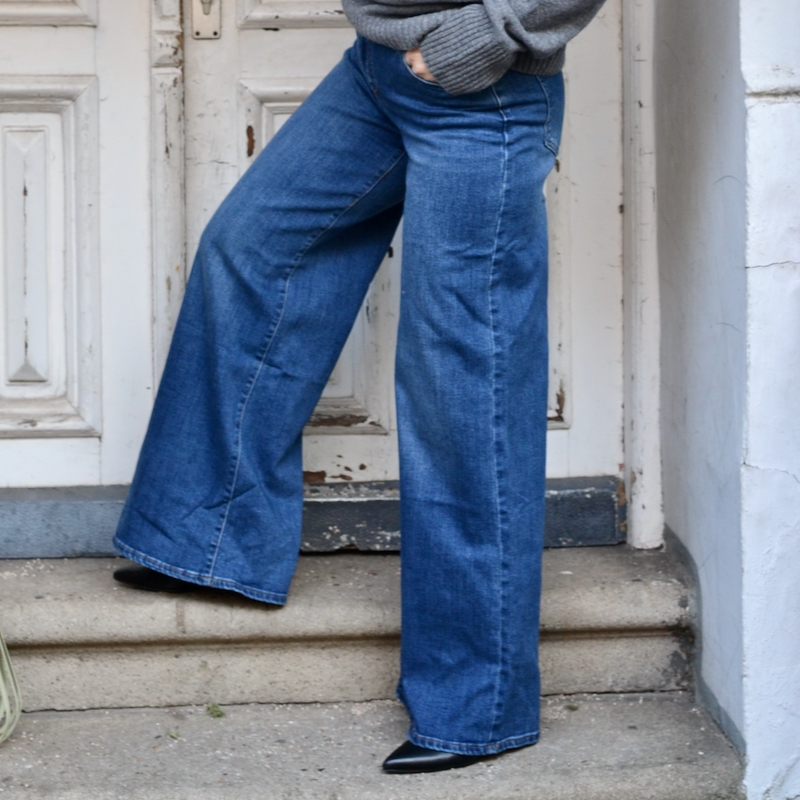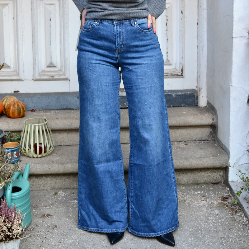 Diese Jeans verlängert die Silhouette und wirkt zeitlos. Ihr neu interpretierter Palazzo-Stil vereint Komfort,