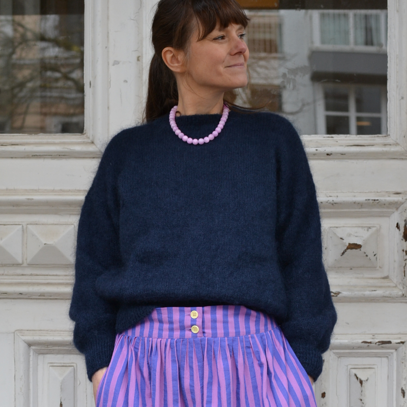 Das Material: 76 % Mohair Wolle, 4 % Wolle , 18 % Polyamid, 2% Elastan