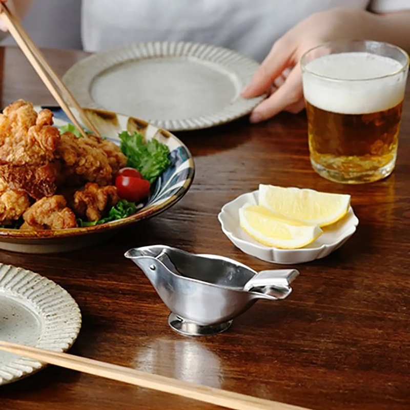 Diese Zitronenpresse aus Edelstahl von Shimoyama besticht durch ihr originelles Design in Form eines Vogels, das das Auspressen jeder Zitronenspalte einfach und angenehm macht. Legen Sie einfach ein Zitronenachtel (1/8) in den Bauch und drücken Sie den Schwanz, um den Saft zu extrahieren. Die tropffreie Tülle sorgt für eine saubere und präzise Anwendung. Auf dem eleganten Ständer wird die Presse zu einem dekorativen und ebenso nützlichen Blickfang auf Ihrem Tisch. Abmessung: Länge 12 cm