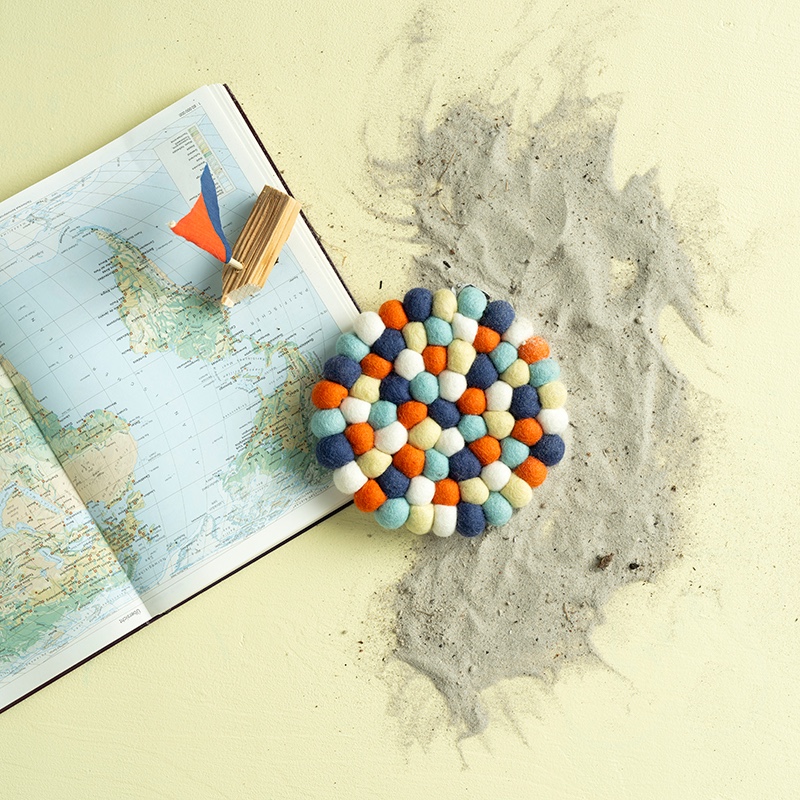 Ein handgefertigter Untersetzer für heiße Töpfe und Pfannen! Perfekt zum Abstellen von Töpfen, da Wolle als Material sowohl schmutz- als auch hitzebeständig ist. Die Untersetzer schützen, dekorieren und bringen Farbe auf den Tisch. Wie alle unsere Wollprodukte ist auch dieser Untersetzer aus hochwertiger Wolle und AZO-freien Farben hergestellt und von Natur aus hitze- und schmutzabweisend. Alle Untersetzer haben eine Aufhängeschlaufe, sodass sie sowohl die Wand als auch den Tisch schmücken können.