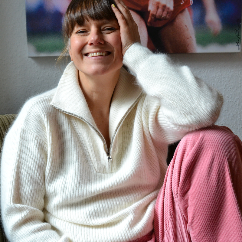 Gemütlich und kuschelig. Wir empfehlen den Pulli in Größe S/M = 36/38, in M/L 38/40.